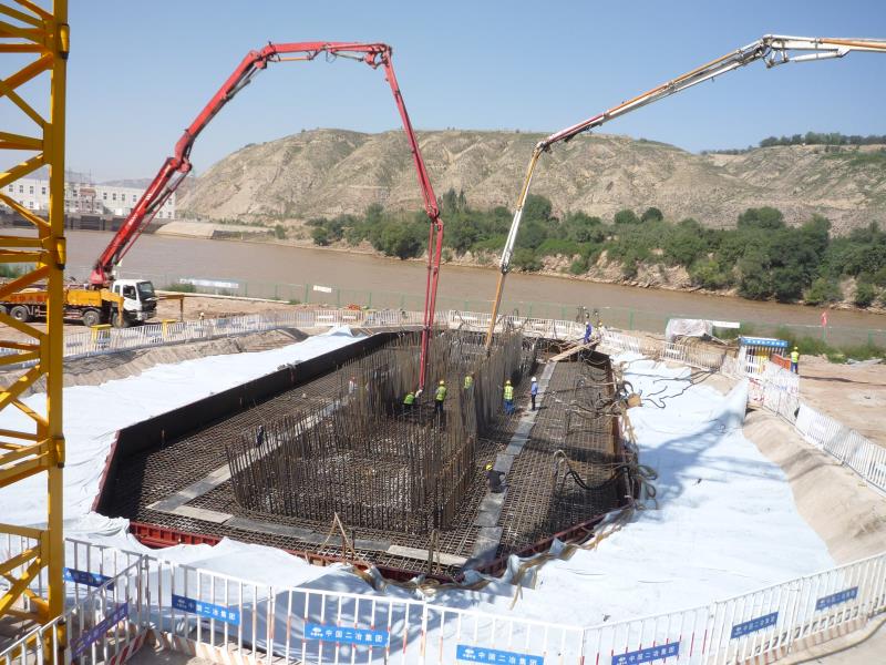 滔滔黄河水奔腾不息,仿佛在诉说着建设者砥砺奋进的故事。2016年深秋,黄河之城兰州层林尽染叠翠流金。伴随着钻机的铿锵轰鸣,在金城这片红色的沃土上,中国二冶开始了横跨黄河南北两岸筑桥的恢弘篇章,在黄河之上奏响了激昂的“蓝色畅想”曲。兰州柴家峡黄河大桥是目前黄河兰州段跨径最大线型最复杂的桥梁,其工艺技术要求高、作业内容复杂、工程施工难度大,这在中冶集团和中国二冶建桥史上尚属首次。该项目建成后,将对进一步完善兰州市的道路交通体系,缓解城区交通压力,更好地服务兰州港务区的发展起到重要的促进作用。在工程建设中,中国二冶牢固树立“争先进、争一流、争第一”的“三争”意识,力保该工程创甘肃省建筑工程“飞天奖”,争创“鲁班奖”及国家AAA级安全文明标准化工地。从项目管控、网络工期、创优目标到优化施工组织设计、技术攻关、标化工地创建,样样都做到高起点、高标准,在历时一年多的有效时间里,在炎炎烈日下,在凛冽的寒风中,在大雪纷飞的环境里,全体参建人员昼夜兼程施工,在黄河湍急的洪流中,排除了一个个险情,完成横跨黄河长366米钢栈桥合龙、266根桩基施工等重点难点工程建设。特别是在体积最大的北岸14#主塔承台施工中,书写了二冶人不畏艰险攻坚克难的故事。该承台顺桥向长16.5米,横桥向长46.05米,高5米,为“哑铃形”现浇钢筋混凝土结构,也是兰州柴家峡大桥的工程重点控制性项目,项目人员连续33个小时昼夜鏖战,完成了3100立方米大体积混凝土浇筑。在2018年初召开的项目推进会上,业主对中国二冶高速优质安全推进工程进度给予了表扬。该工程被确立为“甘肃省2018年的观摩示范工地”,成为沿线9家建设单位中唯一一家甘肃省观摩工地,扩大了中国二冶在兰州和甘肃省的企业影响力和美誉度,将中国二冶品牌树立于黄河之城。为保护母亲河,保护当地环境,在兰州黄河大桥如火如荼的建设中,中国二冶采用塑钢栅栏沿黄河河道进行全封闭、在河道岸边设置砂袋斜坡和斜砌毛石的办法,以缓解河水冲刷,防治黄河水源被污染,受到兰州市市政安全质量监督站的认可,充分展现了中国二冶的央企风范。