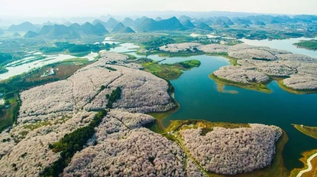 由中国五冶集团承建的贵安樱花园位于黔中腹地,红枫湖湖畔,据查是目前世界上集中连片种植面积最大的樱花园,享有“樱花王国、花香四海、养身福地”之美誉,堪称“中国樱花海”。