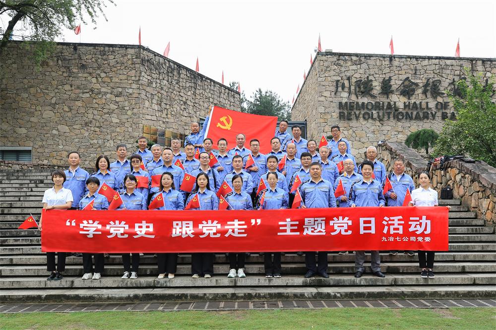 6月25日,九冶七公司在勉各党支部的党员、入党积极分子代表40余人一路高唱红歌,乘车到位于汉中市南郑区红寺湖的川陕革命根据地参观学习。