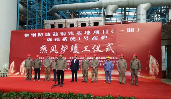 11月29日,柳钢防城港钢铁基地炼铁系统1#高炉热风炉举行竣工仪式。山冶设计董事长魏新民、柳钢集团总经理甘贵平、广西钢铁董事长阎骏、十一冶建设集团总经理何权等相关人员出席仪式。