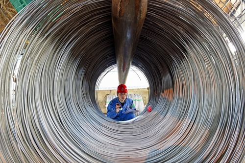 1月10日,太钢不锈线材厂职工在对打包发运前的笔尖钢产品进行最后检测,这些产品将被运往制笔企业进行进一步拉丝处理。