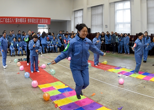 3月5日,炼钢二厂举办纪念三八“展巾帼风采 创幸福生活”主题活动,该厂女职工通过参与各种娱乐活动庆祝三八国际妇女节的到来。图为该厂女职工在进行跳绳接力赛现场。 太钢新闻中心 王旭宏 张鑫文 摄影报道