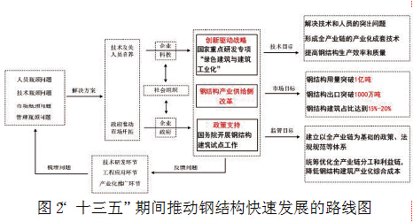 “十三五”期间,我国应从技术研发环节、工程化应用环节和产业化推广环节入手,梳理和解决人员瓶颈问题、技术瓶颈问题、市场和管理瓶颈问题,通过企业、科教机构、政府和社会组织相互协作,做好技术攻关、人员培养、市场开拓工作。我们应大力实施创新驱动战略,做好钢结构产业供给侧改革,并加大政策支持力度,力争完成技术、市场和监管三大目标。