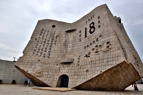 仲春时分,出差路过沈阳中转,距离火车开车还有几个小时的时间,脑海里第一个念头就是去沈阳的九一八历史博物馆看看,了却我多年的心愿。乘坐地铁再换乘公共汽车,不长时间便到达了地处沈阳市大东区柳条湖附近的“九一八”历史博物馆。也就是在柳条湖这个地方,1931年的9月18日,日本关东军发动了“九一八”事变,悍然向中国守军进攻,此后不久,东北三省相继沦陷,九一八也成为中国人民永远的伤痛。走下公交车,远远地便望见一座高大而凝重残历石碑矗立在九一八历史博物馆前的广场上,巨大的石雕台历布满了弹孔与骷髅,仿佛无数被日寇屠杀的冤魂在呐喊。台历左面的一页镌刻着“九一八”事变的史实:“夜十时许,日军自爆南满铁路柳条湖路段,反诬中国军队所为,遂攻占北大营。我东北军将士在不抵抗命令下忍痛撤退,国难降临,人民奋起抗争。”这一刻永远停留在1931年9月18日,中国人民永远不能忘记的这一天。