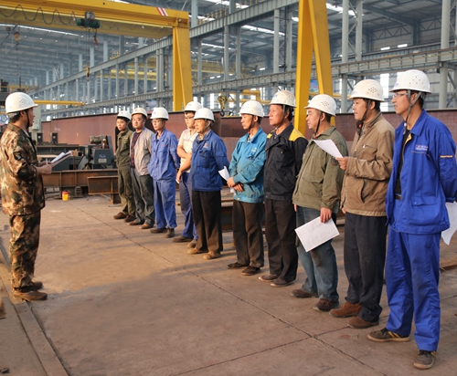 路桥钢结构制作,是邯郸钢结构分公司建厂以来首次接触,合同制作量15000吨,更是钢结构分公司建厂以来所承揽的钢结构制作量最大的订单,对分公司来说是一个上台阶项目。为了确保能顺利按期完成此项目,面对工期紧、要求严、任务重、人员不足等诸多困难,钢结构分公司迎难而上,主动协调、排除万难,采取了积极有效的管理方法多管齐下、多措并举来应对这场攻坚战:一是积极开展劳动竞赛。分公司工会组织车间全体班组开展以“保安全、提质量、比进度,打造精品,树立华冶钢构美好形象”为主题的劳动竞赛活动。通过开展劳动竞赛,将有效地提高全体职工的生产积极性,在各班组之间形成你追我赶的大干热潮。二是严把安全关口。安全监察科对新入厂员工的安全教育严格把关,安全培训不达标绝不允许上岗,使每一位员工把“安全第一”的意识真正放到生产的第一位;对班组每天召开的班前会进行监督指导,提前排除生产过程中的安全隐患。三是进行联合大检查。每周四由生产管理部、安全监察科、综合办公室等部门组织安全文明施工大检查,对检查情况进行排名通报,每次检查结果排名将作为此次劳动竞赛的评比内容之一。四是实行吨单价承包制。为调动员工生产积极性,充分体现多劳多得的原则,分公司对各班组实行吨单价承包制,按照经营科与生产车间核定的吨单价结算班组薪酬,使劳动效率和施工进度有了大幅提升。五是加强各项工序的过程控制。从材料出库、下料、组对、焊接、成型、除锈刷漆、预拼装整套流程下来,每一环节都有严格的质量把控,质量部门严格按照工程质量规定对每一道程序,每一个构件,每一道焊缝进行严格验收,不合格产品绝不进入下道工序,此举有效控制了返工现象和不合格产品的出现,提高了产品质量,避免了材料浪费。六是加强机关服务意识。“机关人员的岗位在一线车间,一切以车间生产为主”这是分公司领导对钢结构机关人员的要求,让机关人员更好地服务车间生产,随时随地解决生产中出现的问题,以满足生产需要。