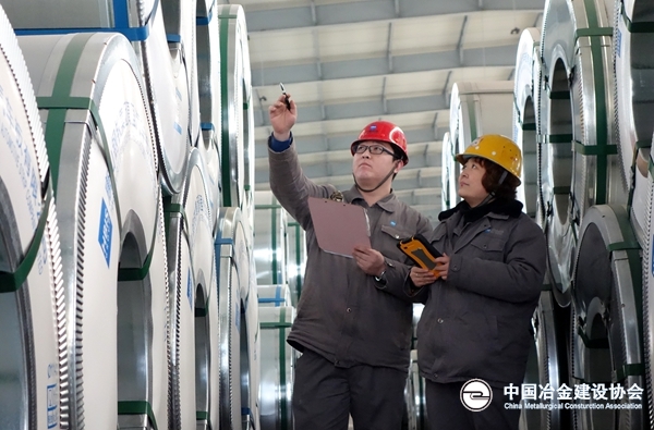 19日,河钢唐钢物流分公司高强汽车板库区职工正在检查、核实产品发货信息。