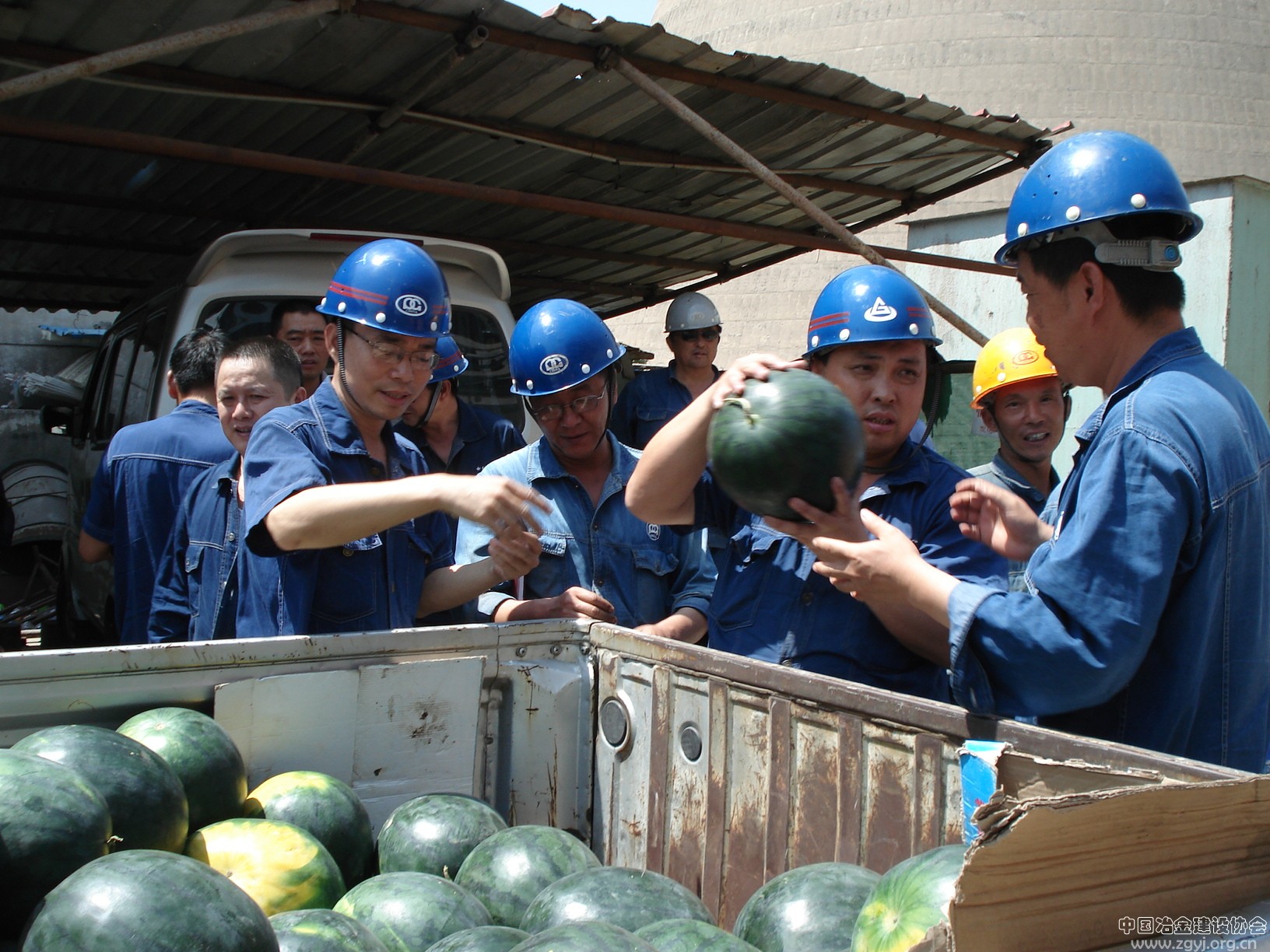 ,攀钢工程公司建筑分公司给施工一线送去绿豆、藿香正气水和西瓜等防暑降温物品。 攀钢工程公司 冯金昌 摄影报道 ②