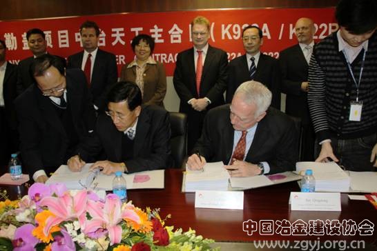 中冶天工副总经理王孜睿、国际分公司经理尚文林、国际工程分公司经理孙庆东及业主方代表高级副总裁John Jones、项目副总监Tom Sherz、合同经理Henri Brain、项目前期运行副总监Wolfhard Meyer、总裁助理Nebel Tang等共同出席了签约仪式。 (中冶天工 贾光明 叶旭东) ②