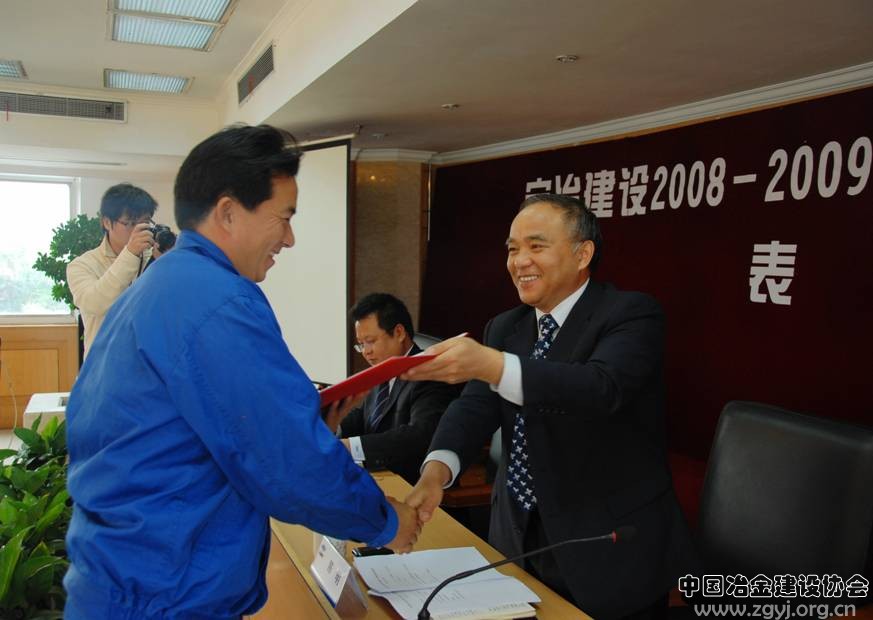 为宝冶建设董事长、党委书记陈明为获奖者颁奖。