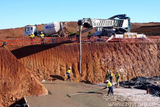 自7月3日起,西澳SINO铁矿项目1#、2#球磨机基础混凝土工程开始浇筑。开工之前,二十冶项目经理部对大体积混凝土的施工制定了周密的施工计划,对人力、机械、安全措施等环节进行了详细地布置,严格按照澳洲规范进行施工。MCC搅拌站为了确保混凝土质量,在施工之前经过多次试拌,对混凝土配比进行了最优调整。为了避免原材料因温度过高而造成坍落度不稳定,搅拌站还对现场的骨料堆场采取了一系列的降温措施。
