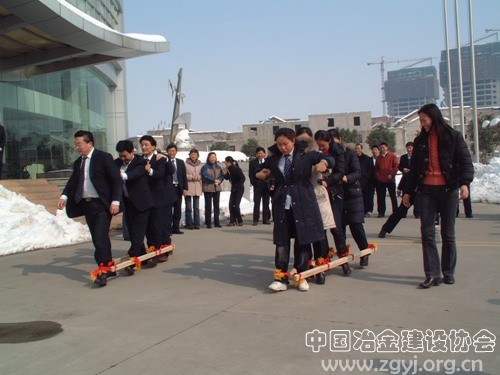 在欢快的乐曲声中联欢活动正式开始。绑腿赛跑活动项目首先开始,广大员工踊跃参加,四人一组,随着裁判员的一声令下,两队出发,竞争高低,队员们你追我赶,奋勇争先,赛场上下激情呼应,大厅内处处洋溢着欢声笑语。随后进行的猜奖项目更是把联欢活动推向了高潮,员工分为四组,将自己的游园票别在自选的扑克牌上,然后让一组组的员工代表上台摸出中奖的扑克牌,在大家的阵阵欢呼声中,共产生一、二、三等奖若干名。