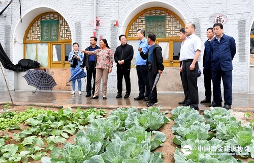 6月11日,保德县腰庄乡铺房墕村村民陈秋梅(左3)让人参观她家院子里的“菜园子”。