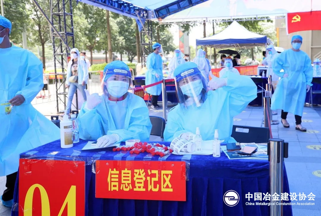 中国二十二冶广东公司第一时间紧急召开疫情防控会议,对相关防疫工作作出部署。在积极联系社区组织职工开展核酸检测、疫苗接种等内部常态化防疫工作的同时,积极投身社区防疫志愿服务,用实际行动深入践行党史学习教育“我为群众办实事”。在接到黄埔区海安社区急需志愿者支援的号召后,10名青年职工主动请缨加入青年志愿者突击队,通过分发检测号码、帮助居民测温、引导扫码登记、做好现场秩序维护等等,协助开展全员核酸检测工作。