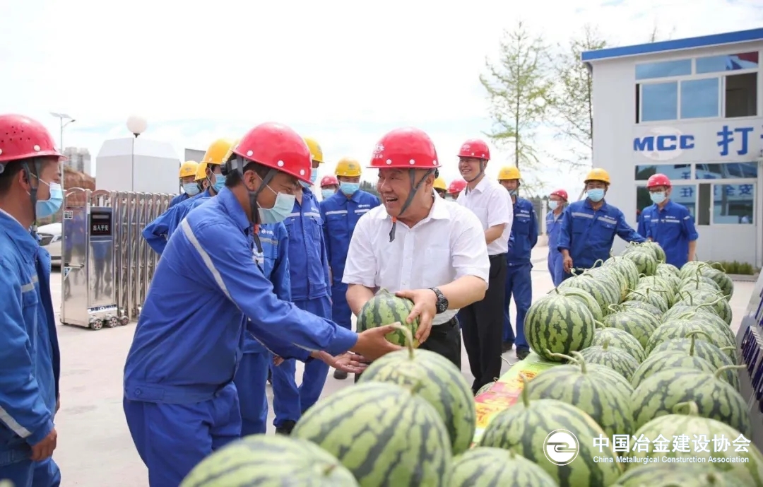 6月28日,中国五冶集团党委书记、董事长程并强,党委副书记、工会主席周悦静等一行来到中国五冶建筑科技产业园慰问员工,为大家送去西瓜、绿豆、清凉饮料、矿泉水等慰问品。 中国五冶集团 邓 超 王域西 摄影报道