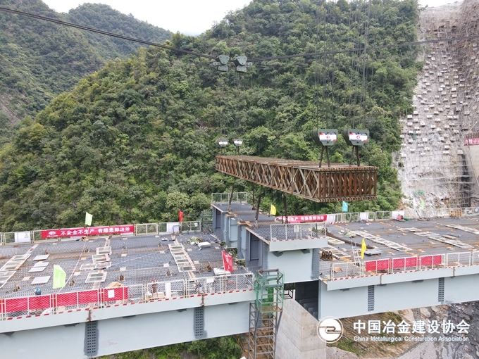 9月1日,中国五冶承建的四川省九寨沟(甘川界)至绵阳公路钢梁采购 GL3 标段桂溪大桥现场,一块重达50吨的钢箱梁,经过2组缆索吊30余分钟的“保驾护航”,在35米高的空中准确无误地吊装至右幅合龙位置,标志着九绵高速桂溪大桥右幅钢箱梁顺利合龙,合龙温差不超过1度、误差不超过1毫米。