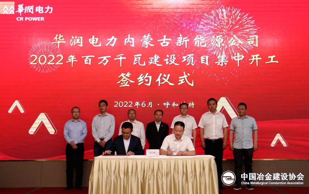 6月30日,华润电力内蒙古新能源公司在呼和浩特市举行2022年百万千瓦建设项目集中开工签约仪式,标志着重点开发的阿巴嘎旗别力古台500MW、阿拉善宗别力200MW项目、鄂尔多斯杭锦旗200MW风电项目全部开工。会上,中国一冶与华润电力北方大区签订了合作协议书。