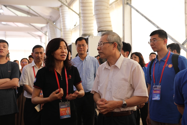中国冶金建设协会秘书长、全国选拔赛焊接项目的裁判长刘景凤,向人社部汤涛副部长介绍焊接项目比赛情况。