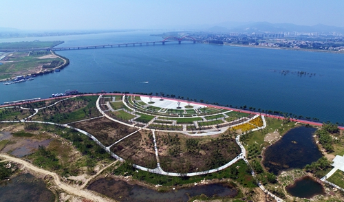 7月18日,空中俯瞰湖北省襄阳市鱼梁洲环岛景观带工程。由中国一冶承建的该工程项目投资8.9亿元,分为“快乐水岸”、“鱼梁汉影”、“创智之滨”和“绿野迷踪”四个景观板块以及外环次干道组成,目前完成景观面积达24万平方米和6公里外环次干道的水稳、沥青铺设等施工任务,整个景观工程已初具雏形。项目建成后将为市民提供一个美丽、绿色、健康的休闲娱乐场所。 中国一冶集团 陈 明 虞 忠 摄影报道