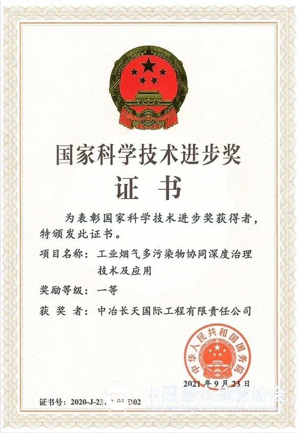 中冶长天作为第二完成单位参与完成的“工业烟气多污染物协同深度治理技术及应用”项目主要创新点之一是中冶长天自主研发的活性炭法多污染物烟气净化技术。钢铁烧结球团烟气多污染物成分复杂,是工业烟气治理的难点和重点。自2008年起,中冶长天成立专门研发团队,依托国家863计划,建立协同控制理论方法,自主开发了分层错流多位喷氨吸附、多段可控整体流再生、多点卸料“Z”型输送、余氨循环利用及废水零排放等技术及装备,打破了国外技术垄断封锁,真正实现多污染物的同步脱除及副产物的资源化利用,且脱除效率更高、运行成本更低,比国外投资下降约40%,整体达到国际领先水平。该技术在宝钢本部和湛江分别建立了烧结烟气活性炭法单级、双级吸附示范工程,开创了我国钢铁烟气治理新里程,被国家工信部列为“国家鼓励发展的重大环保技术装备目录”大气防治类首位,为出台《关于推进实施钢铁行业超低排放的意见》提供技术支撑。已应用于安阳钢、武钢、晋南钢铁、永洋钢铁、金鼎重工、中天钢铁、永锋钢铁等20多个烧结球团配套烟气净化工程。