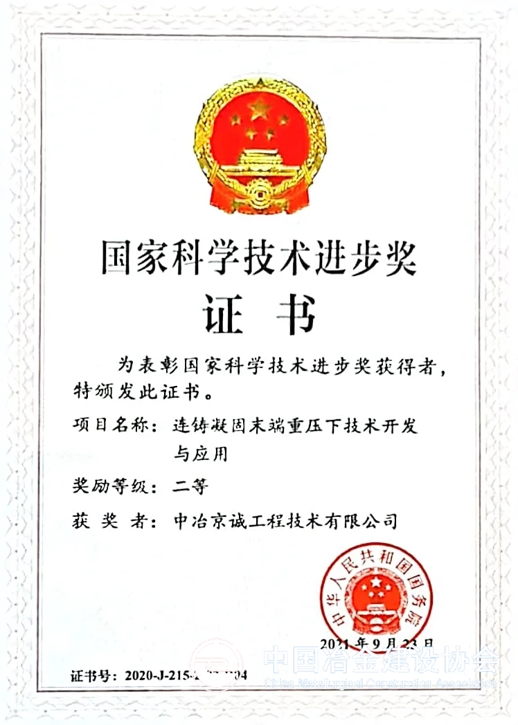 国家科技进步二等奖:连铸凝固末端重压下技术开发与应用