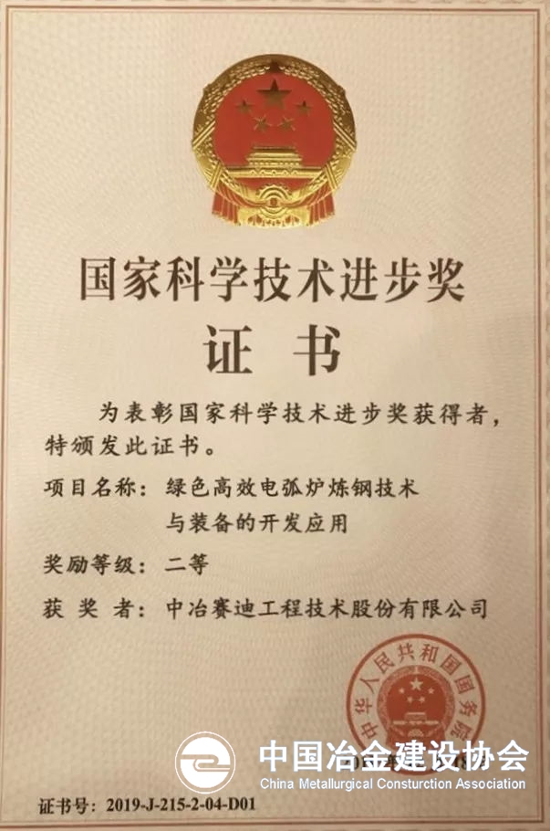 1月10日上午,中共中央、国务院在北京隆重举行国家科学技术奖励大会,正式揭晓2019年度国家科学技术奖。在本届296个获奖项目中,中冶赛迪牵头申报的“绿色高效电弧炉炼钢技术与装备的开发应用”项目喜获国家科学技术进步奖二等奖,受到隆重表彰。