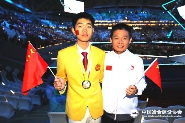 周树春与第45届世界技能大赛焊接项目冠军赵脯菠师徒合影。