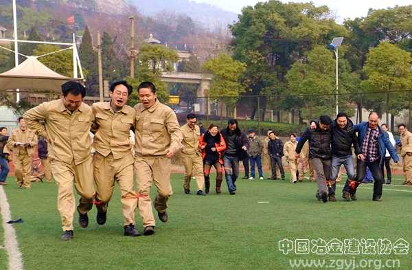 图为职工们携手并肩开展三人四足比赛。 武钢大冶铁矿 张 波 邵 亮 摄影报道 ②