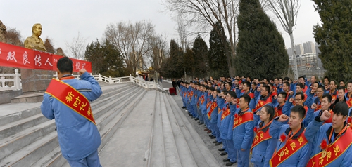 日前,太钢100名被命名为“双良传人”的青工,在太钢渣场李双良铜像前宣誓尽职:将进一步立足岗位,继承和发扬李双良精神,为太钢新时代新发展作出新贡献。