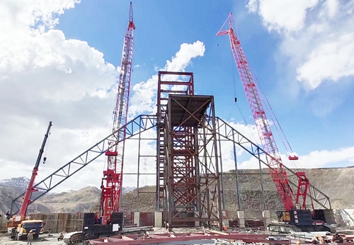 5月4日,中国二十二冶西藏玉龙铜矿改扩建项目粗矿堆厂房76.4米跨钢结构屋架吊装完成,这是截至目前公司安装过的空间跨度最大的单榀钢结构件。