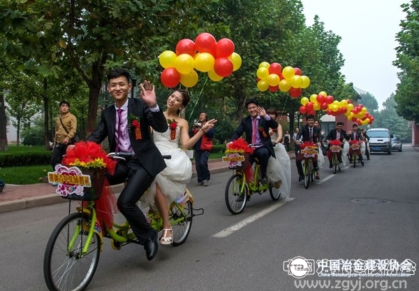 国庆节前夕,邯钢10对新人以低碳环保的青年集体婚礼方式,缔结美好姻缘。他们骑上双人自行车,身体力行倡导低碳环保理念,传承中华民族勤俭节约的传统美德。据悉,1992年以来,邯钢已为千余对新人举办集体婚礼。集体婚礼,被邯钢青工热捧。 邯钢集团 吴兆军 刘 兵 翟忠智 摄影报道