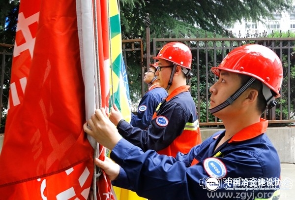上午,中国二十冶集团举行安全生产月升旗仪式。