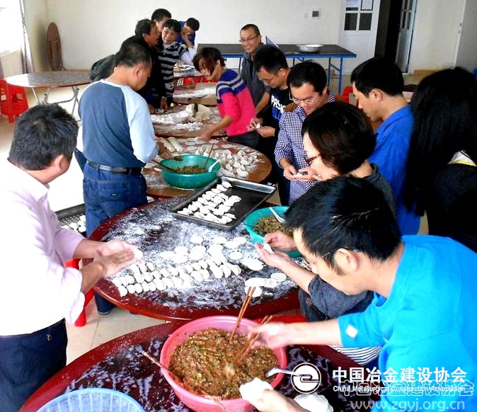 准备就绪,大家纷纷捋起衣袖,揉面、和馅,切段、擀皮,各有分工。女同志心灵手巧,包饺子功夫娴熟,包出的饺子精美别致,大家拍手叫绝;男同志手艺略显生疏,却不满足于传统饺子的形状,试着玩起各种花样。顷刻间,独具特色的花式饺子纷纷呈现在大家面前,于是又彼此“评头论足”起来。当工地上的同事下班回到食堂时,一盆盆热腾腾的饺子已端到了桌上。品尝着热气腾腾的饺子,感受到了大家庭的幸福和温暖。 (中国五冶集团 李娜娜/文) ②