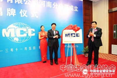 签约仪式结束后,中国中冶举行了简单而隆重的河南分公司揭牌仪式。中国中冶河南分公司总经理白小虎作表态发言,河南省国资委主任肖新明、中国中冶副总裁黄丹分别发表致辞。最后,中冶集团总经理,中国中冶董事长、党委书记国文清国文清与河南省副省长张广智共同为中国中冶河南分公司成立揭牌。