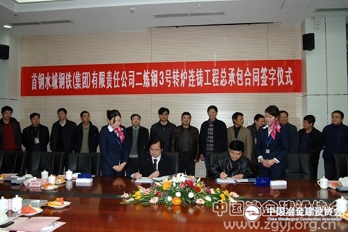 3月3日下午五点,首钢水城钢铁(集团)有限责任公司二炼钢三号转炉连铸工程总承包合同签字仪式在中冶南方会议中心举行。