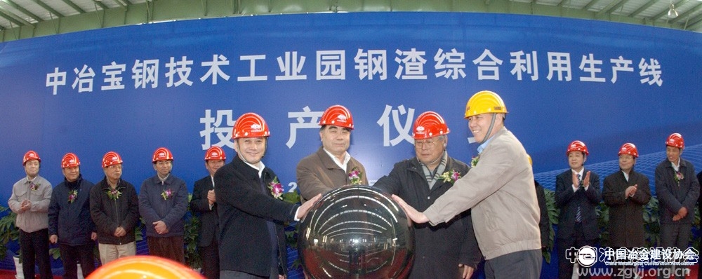 2010年1月25日下午14:00,国内首条自主集成钢渣综合利用生产线在中冶宝钢技术服务有限公司工业园区建成投产。宝钢股份公司副总经理李永祥、中冶股份监事会主席韩长林、宝钢集团原副董事长沈成孝、宝钢股份工会主席林鞍等四人共同按下投产仪式球。