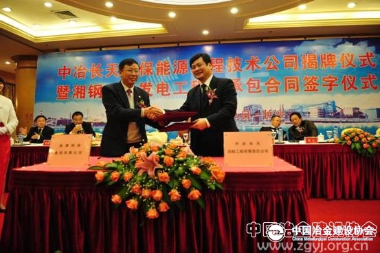 12月18日上午,随着湖南省副省长、省委政法委员会第一副书记刘力伟与中冶长天董事长易曙光为“中冶长天环保能源工程技术公司”揭牌,中冶长天环保能源工程技术公司在长沙正式成立。这是中冶长天践行央企社会责任,在积极开拓钢铁节能减排、市政环境工程及资源综合利用等新领域的进程中跨出的关键一步。当天,中冶长天环保能源工程技术公司首个总承包项目——湘钢余热发电工程合同同时签订,湘潭钢铁集团有限公司党委书记赵振营、中冶长天总经理何国强代表双方在合同上签字。