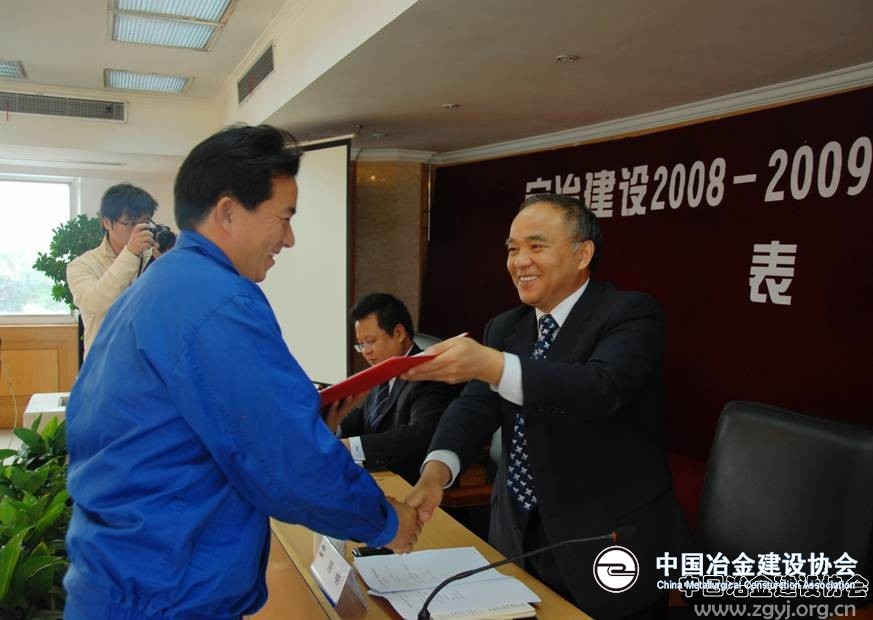 为宝冶建设董事长、党委书记陈明为获奖者颁奖。