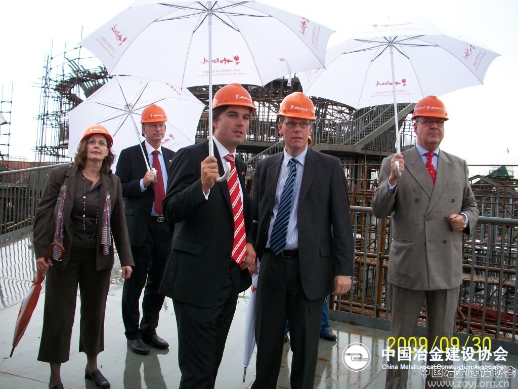 9月30日,荷兰王国建设部部长,荷兰王国驻华大使,上海世博会荷兰政府总代表一行共20多人来到宝冶建设上海世博会荷兰馆现场,对荷兰馆的建设情况进行参观考察。