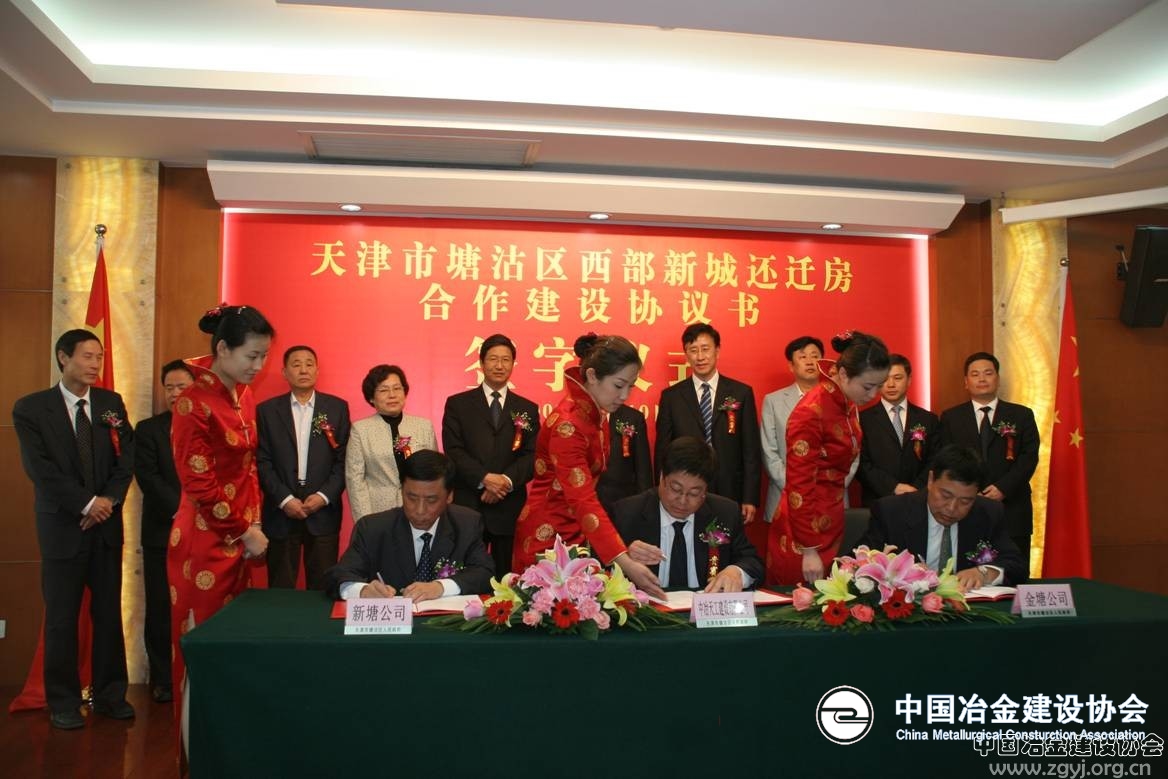 4月10日下午,天津市塘沽区政府在区行政许可服务中心举行签字仪式,中冶天工与天津滨海新塘建设发展有限公司和天津滨海金塘建设发展有限公司正式签署天津市塘沽区西部新城还迁房合作建设协议书,标志着该公司承建的第一个大型保障性住房项目正式开始实施。中冶集团党委副书记、纪委书记国文清、中冶天工董事长张培义、中冶置业有限公司董事长侯宝旭出席签字仪式。天津市塘沽区区长张家星、区人大常委会主任王玮、区政协主席谷正义、区委副书记冯宗英等以及农业银行天津分行的领导参加仪式。中冶天工副总经理苏涛代表中冶天工签署协议。签字仪式由塘沽区区委常委、常务副区长刘玉友主持。