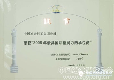 中冶集团荣获第三届《工程新闻纪录》杂志和《建筑时报》“中国承包商和工程设计企业双60强”称号 。 (中冶集团新闻信息中心) ②
