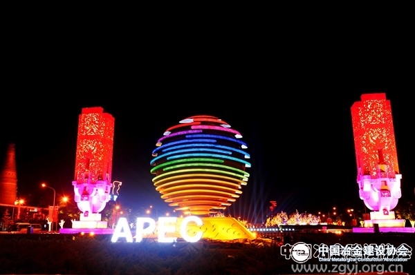 继怀柔APEC花坛完美亮相之后,由北京首钢建设集团有限公司钢构分公司制作、安装的APEC立体会徽近日正式完成,浓厚的中国元素、流光溢彩的灯光效果吸引了过往的游客。与眼前的APEC景观大道、不远处国家体育场(鸟巢上的LED灯光网慕)、盘古大观大厦、奥林匹克公园观光塔等景观构成一幅美丽画卷。 首钢建设集团 赵泽民 摄影报道 ②