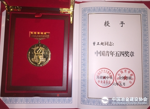 中国十九冶集团员工曾正超被授予“中国青年五四奖章”