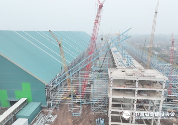 2月16日,中国二十冶承建的武钢运二B区料场环保改造工程C2料场项目首件屋架梁吊装成功。
