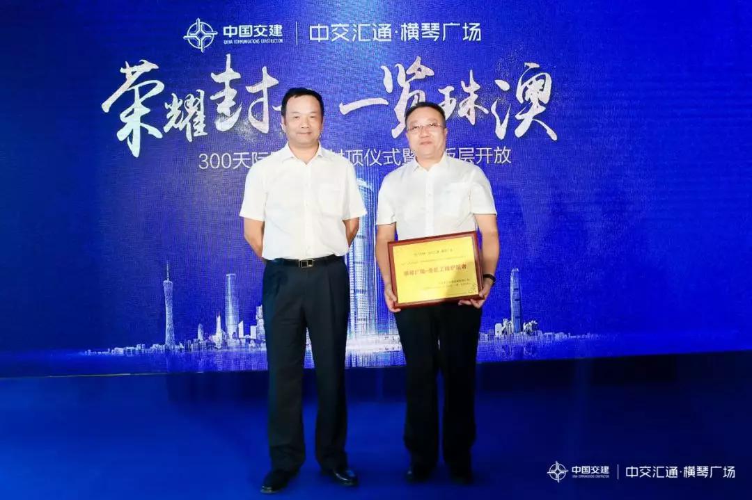 9月17日,由远达国际承接的中交汇通横琴广场项目顺利封顶,中国交建建设集团有限公司副总裁王海怀,中交集团各航务局领导及参建单位领导参加封顶仪式,远达国际总经理董晓辉应邀出席。仪式上,中交南方投资有限公司授予远达国际“横琴广场-金匠工程护航者”的金色奖牌。