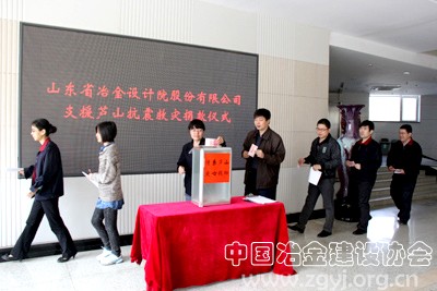 为支援灾区人民抗震救灾,山东省冶金设计院股份有限公司积极响应上级号召,于