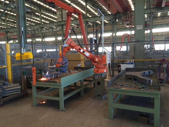 12月18日,在中冶宝钢技术公司工业园内两台机器人设备正根据操作人员的指令对在手渣包项目筋板进行全自动坡口开设切割,标志着中冶宝钢技术重型机械分公司机器人自动化生产进程取得突破。