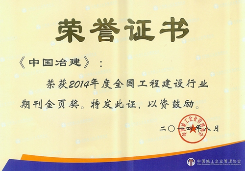 《中国冶建》连续7年获全国工程建设行业“金页”奖