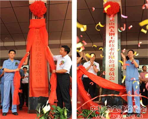 6月28日上午,山西太钢工程技术有限公司揭牌成立。公司党委书记杨海贵、太钢总经理胡玉亭、中国冶金建设协会副会长兼秘书长焦凤山、冶金工业规划研究院院长李新创为山西太钢工程技术有限公司揭牌。