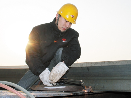 2014年新年伊始,刘涛再一次踏上了去往新疆的路程。中国二十二冶集团自主设计生产的50吨门式起重机就要开始制作了,这也是中国二十二冶集团第一次制作这样大吨位的起重设备,在实际生产当中也存在着许多问题,起重机内部结构非常复杂,对焊接操作造成了不小的难题,同时焊接顺序对焊接变形的影响很大,刘涛经过和技术人员反复商讨研究最终确定了安装顺序。由于热输入的改变对焊接变形有很大的影响,所以他们通过模拟焊接起重设备的局部构造,实验得出焊接参数变化时产生的热输入改变,这对选择合适的焊接参数,防止焊接变形起到了非常大的帮助,最终50吨门式起重机顺利安装,试吊成功。