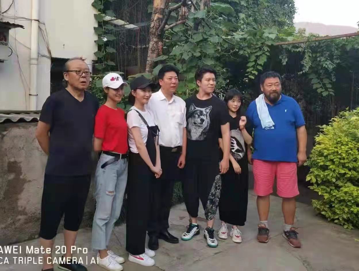 田野与《火红年华》导演王文杰、编剧革非及剧中部分演员合影